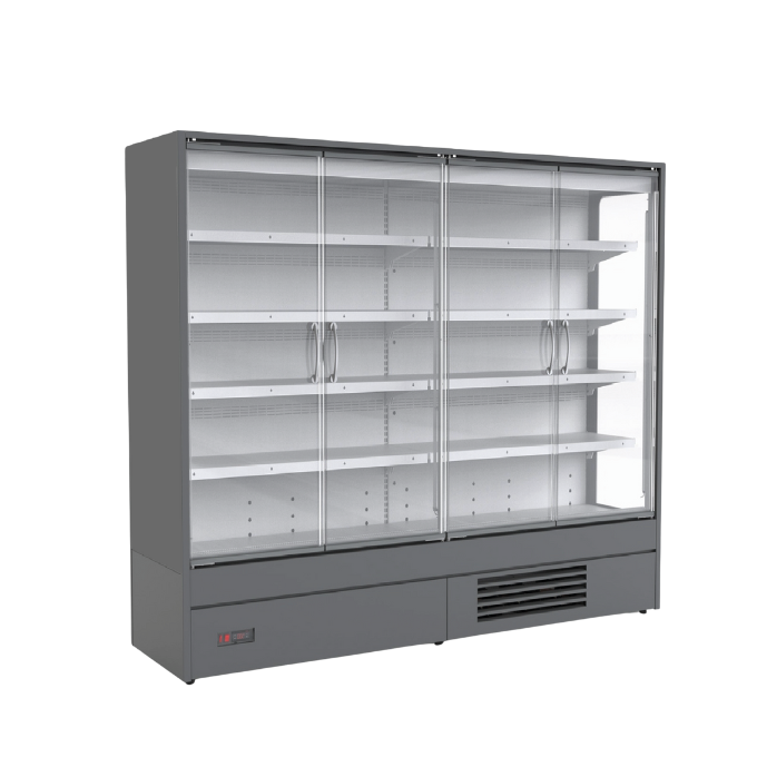 With a working temperature range of 0°C to 2°C, it's ideal for fresh food and drinks. It uses natural R290 refrigerant, LED shelf lighting, and natural defrost, all helping to lower energy use. The durable steel frame is powder-coated for a clean retail finish, and the layout includes suspended shelves and base display for flexible merchandising.